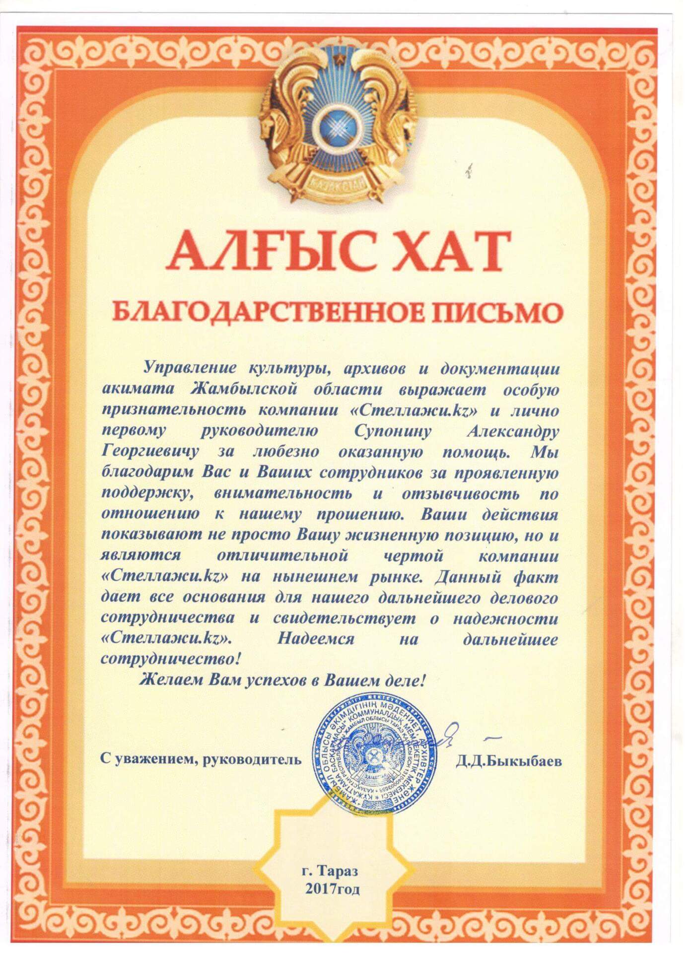 Ыраазычылык каттары